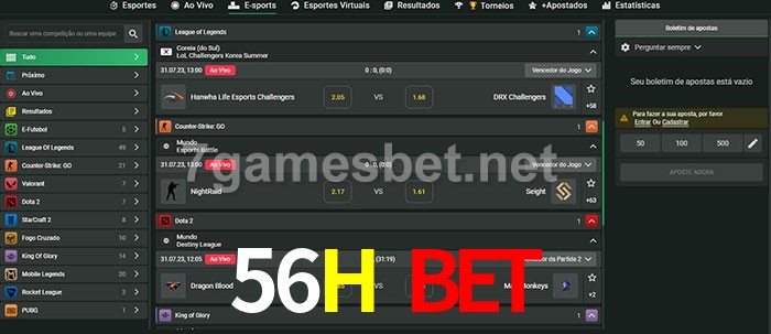 A aposta 56H Bet oferece aos jogadores a experiência mais conveniente de apostas em eSports!